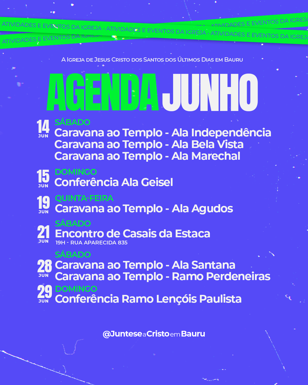 Programe-se com sua família, participe e convide amigos! Cada atividade é uma oportunidade de crescimento espiritual e união.